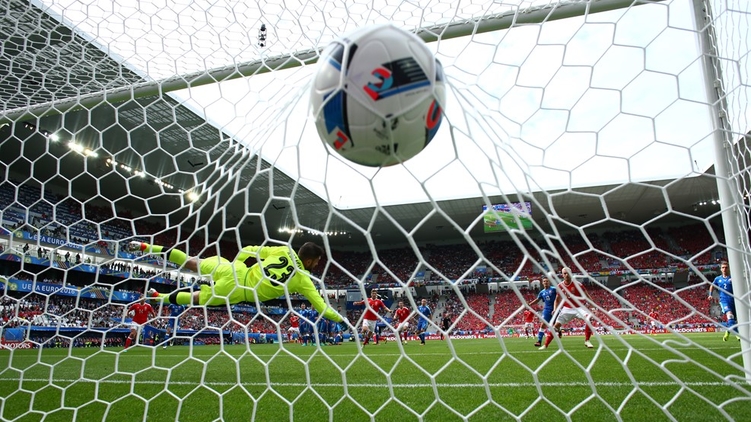 Вратарь словаков Козачик занял неверную позицию в воротах, и Гаррет Бэйл мощно пробил в ближний угол со штрафного.