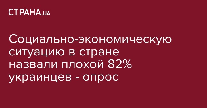 82% украинцев оценивают социально-экономическую ситуацию в стране как плохую. Об этом свидетельствуют данные соцопроса, проведенного Киевским международным институтом социологии (КМИС), пишет "Интерфакс-Украина".