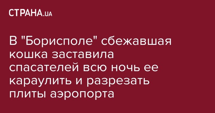 В аэропорту "Борисполь" во время осмотра багажа от пассажиров убежала кошка, животное забилось в бетонные конструкции кафе Heineken. Для того чтобы спасти беглянку, спасателям пришлось ожидать разрешения руководства, чтобы разрезать плиты кафе. Об этом сообщается на странице Kyiv Animal Rescue Group в Facebook.