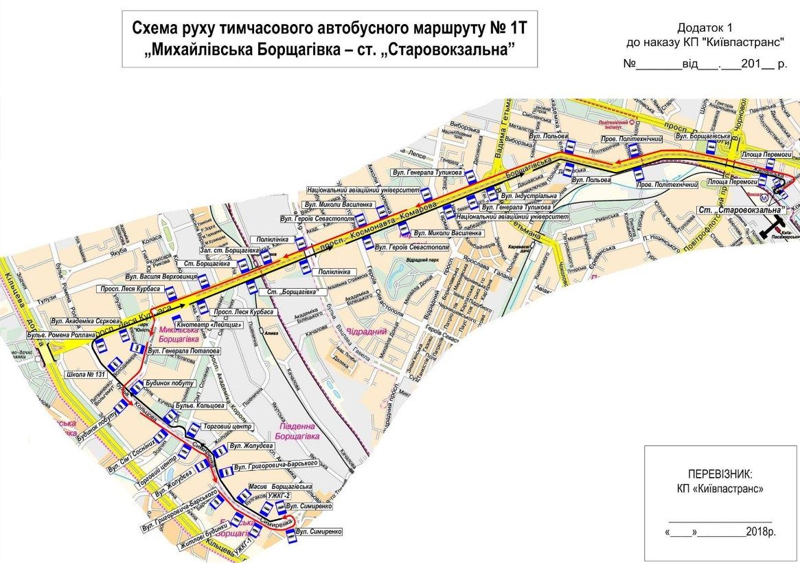 Вместо трамвая от станции "Старовокзальная" до Михайловской Борщаговки будут курсировать автобусы №1Т.