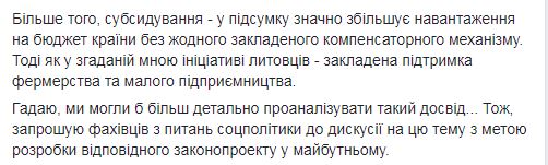 "Думаю, мы могли бы более детально проанализировать такой опыт … Поэтому, приглашаю специалистов по вопросам соцполитики к дискуссии на эту тему с целью разработки соответствующего законопроекта в будущем, – предложил депутат.
