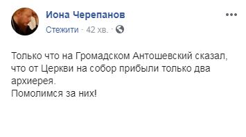 Настоятель ионинского монастыря Иона Черепанов (сам он на собор не прибыл и не поддерживает автокефалию) опубликовал фото и предложил помолиться за них (видимо, за спасение их грешных душ).
