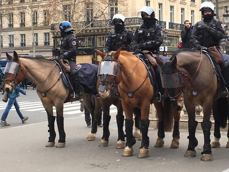 Сообщается, что несколько сотен митингующих идут маршем к Елисейским полям, направляясь в центр Парижа, и поют "Марсельезу".
