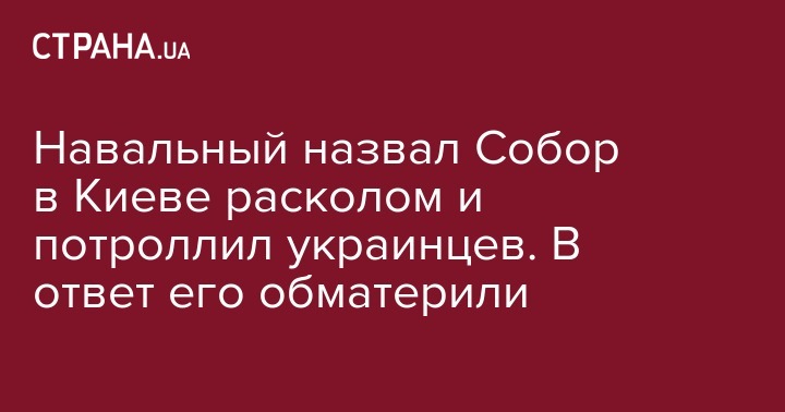 Навальный назвал Собор в Киеве расколом и потроллил украинцев. В ответ его обматерили
