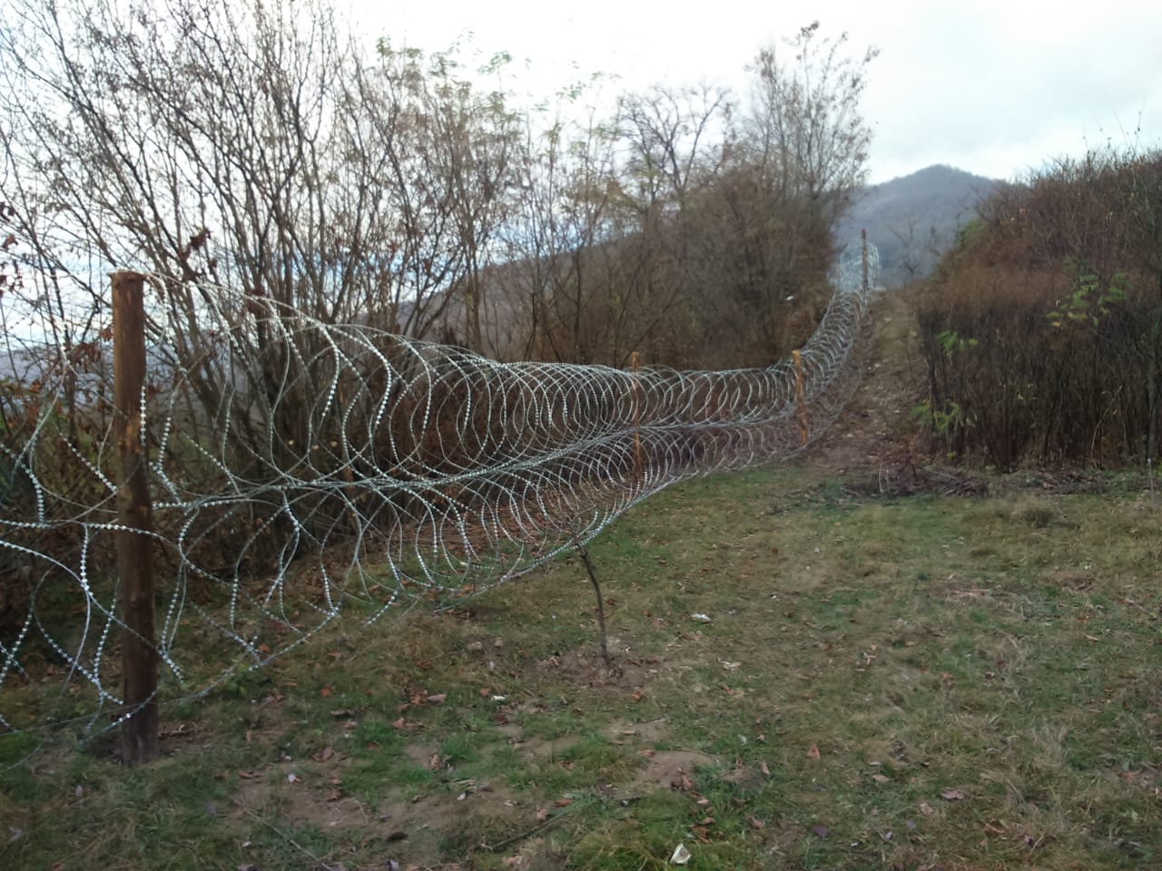 Пограничники растянули забор из колючей проволоки на расстоянии семи километров вдоль границы.