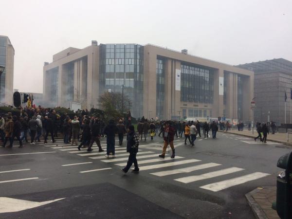 После того как около 400 демонстрантов из фламандского националистического движения Voorpost начали забрасывать камнями и другими предметами здание Еврокомиссии, полиция применила слезоточивый газ и водомет. Протестующие из марша, созванного по инициативе ультраправых организаций, забросали камнями также полицию.