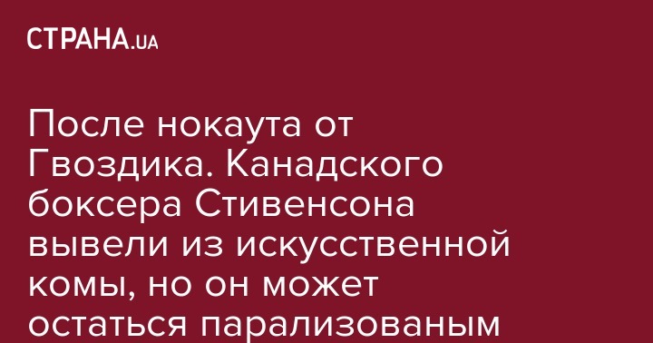 После нокаута от Гвоздика. Канадского боксера Стивенсона вывели из искусственной комы, но он может остаться парализованым