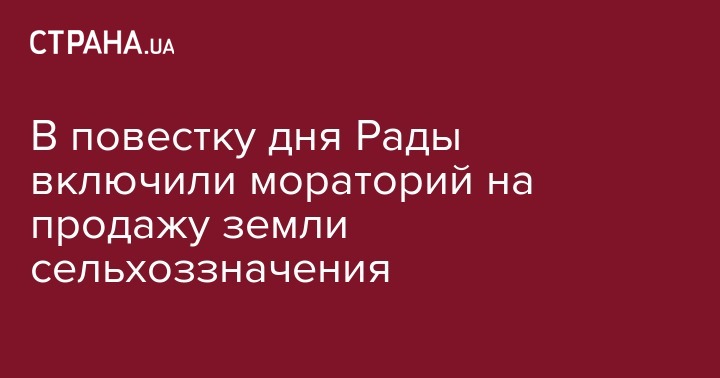 В повестку дня Рады включили мораторий на продажу земли сельхоззначения