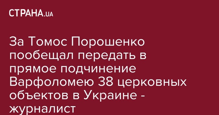Томос об автокефалии украинской православной церкви, дарование которого ожидается 6 января во время визита президента Украины Петра Порошенко и митрополита Епифания в Стамбул, будет содержать пункты о передаче в прямое подчинение Фанару 38 объектов на территории Украины.