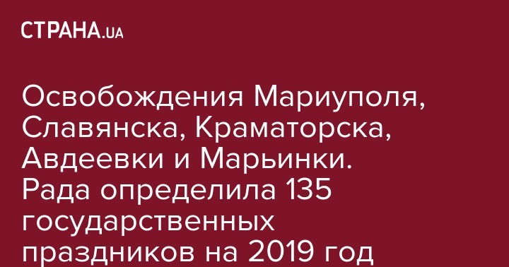 Кроме того, в 2019 году будет отмечаться 5 лет с дня освобождения Мариуполя, Славянска, Краматорска, Авдеевки, Марьинки и других населенных пунктов на востоке Украины.