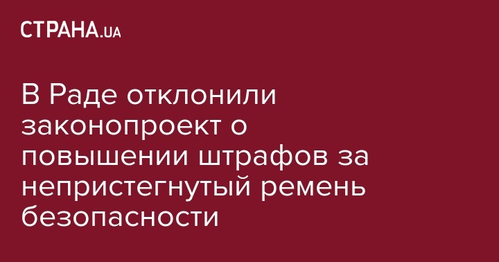 Верховная Рада Украины не поддержала во втором чтении и в целом проект закона, который предусматривал увеличение штрафов за нарушения правил использования ремнями безопасности и автошлемами почти в 17 раз - с 51 грн до 850 грн. Об этом сообщает "Интерфакс-Украина"
