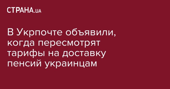Правительство и президент в июне 2019 года пересмотрят тариф на услуги доставки пенсий, вокруг которого разгорелся скандал, во втором полугодии 2019 года. Об этом сообщает Укрпочта, пишет Укринформ.