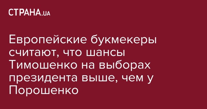 Ставки bwin на то, что следующим президентом Украины на конец марта станет Ю.Тимошенко, принимаются как 2,5 к 1, тогда как в случае Петра Порошенко они составляют 3,5 к 1. То есть шансы Тимошенко они оценивают более высоко.