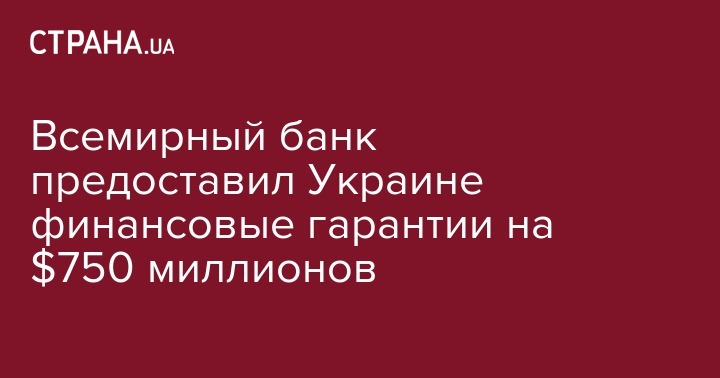 Всемирный банк предоставил Украине финансовые гарантии на $750 миллионов