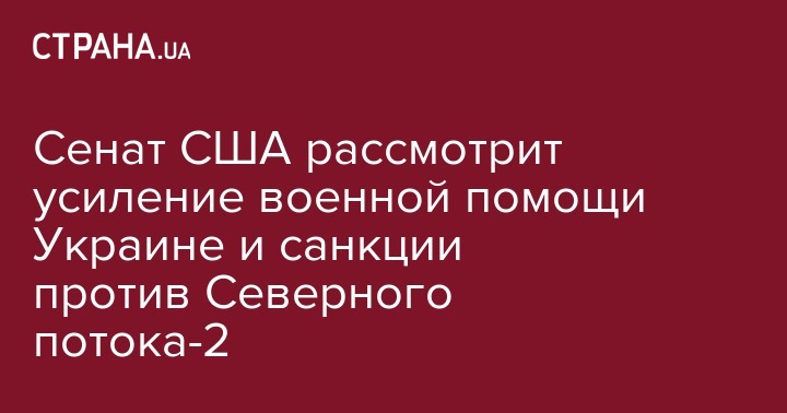 Американские сенаторы из обеих партий внесла на рассмотрение верхней палаты американского Конгресса проект резолюции с призывом об усилении оборонной помощи Украине, а также поддержки усилий по блокированию газопровода "Северный поток- 2". Об этом сообщило в среду Посольство Украины в Вашингтоне.