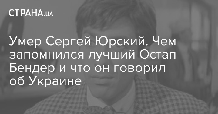 Утром 8 февраля, на 84-м году жизни, в больнице умер знаменитый актер театра и кино Сергей Юрский, сыгравший роль Остапа Бендера, а также известный по таким фильмам, как "Любовь и голуби" и "Место встречи изменить нельзя". О его смерти сообщили в пресс-службе театра Моссовета. Ее подтвердила и дочь умершего. По ее словам, причиной смерти стала остановка сердца. С Юрским попрощаются в театре Моссовета, а похоронят артиста на Троекуровском кладбище.
