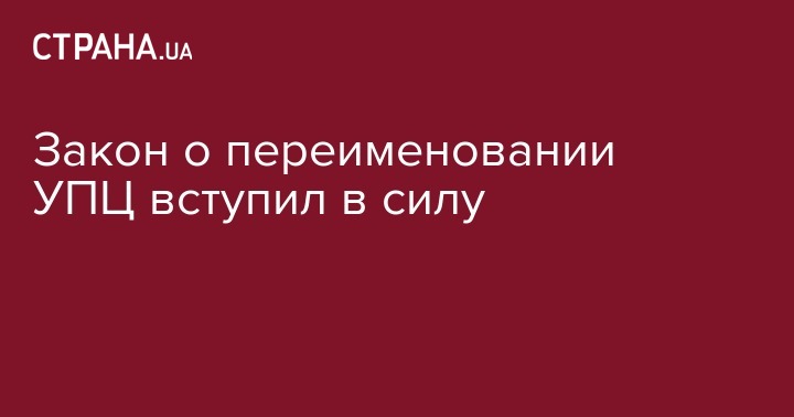 Сегодня, 27 декабря, вступил в силу закон, обязывающий Украинскую православную церковь в своем названии указать принадлежность к Русской православной церкви (РПЦ). Документ опубликован в №248 официального парламентского издания "Голос Украины" и вступил в силу. Об этом сообщает "Интерфакс-Украина".