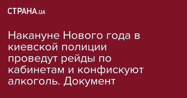 Накануне Нового года в киевской полиции проведут рейды по кабинетам и конфискуют алкоголь. Документ