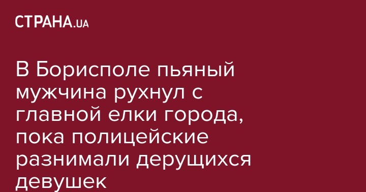 Как говорится в сообщении, в то время, когда патрульные заметили забравшегося на главную елку Борисполя нетрезвого мужчину, они пытались разнять дерущихся под елкой девушек. Вероятно, это была более сложная задача, чем снять с елки злоумышленника, поскольку тот сам не удержался на дереве и рухнул вниз. При падении мужчина сбил несколько игрушек и повредил часть праздничной иллюминации.