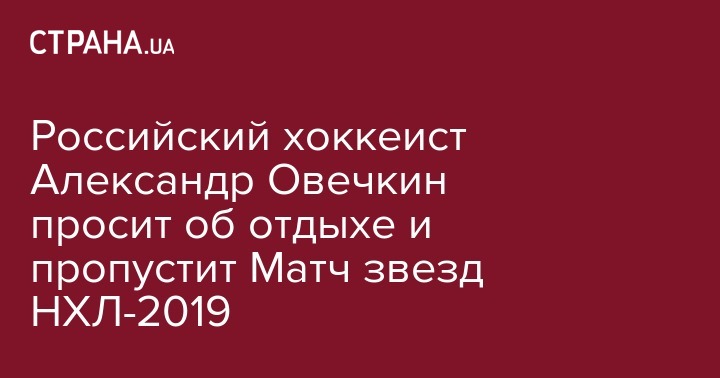 Известный российский хоккеист, капитан клуба "Вашингтон Кэпиталз" Александр Овечкин не будет участвовать в Матче звезд Национальной хоккейной лиги. Об этом пишет "Советский спорт"