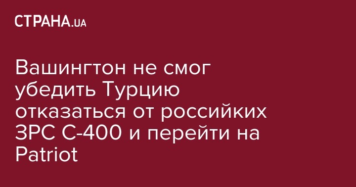 Вашингтону не удалось убедить Анкару отказаться от приобретения российских ЗРС С-400 в пользу американской системы Patriot, сообщает в воскресенье "Интерфакс" со ссылкой на турецкую газету "Йени шафак".