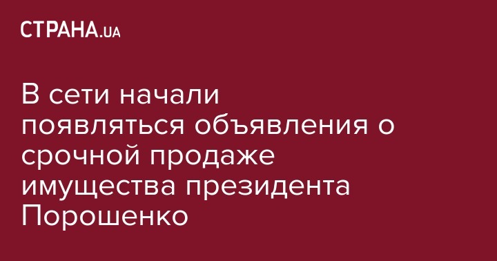 В сети начали появляться объявления о срочной продаже имущества президента Порошенко