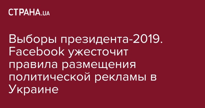 Такая политика вступит в силу в Украине в феврале, поскольку выборы президента состоятся 31 марта. Ужесточение также коснется стран ЕС, Индии и Нигерии. В платформе считают, что Facebook с 2016 года стал для политиков и их противников средством распространения фальшивых новостей и другой пропаганды.