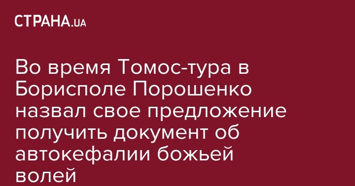 Во время Томос-тура в Борисполе Порошенко назвал свое предложение получить документ об автокефалии божьей волей