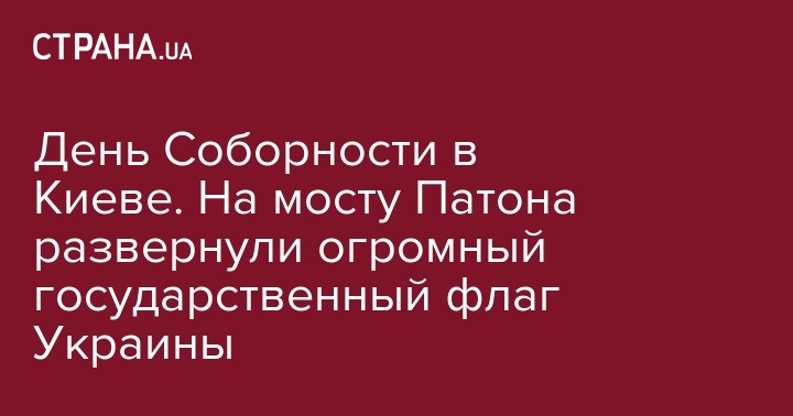 Во вторник, 22 января, в Киеве на мосту Патона развернули огромный государственный флаг. Это сделали участники акции ко Дню соборности Украины, которые выстроились в "живую цепь", соединив две колонны людей - с левого и правого берега столицы, передает "112 Украина".