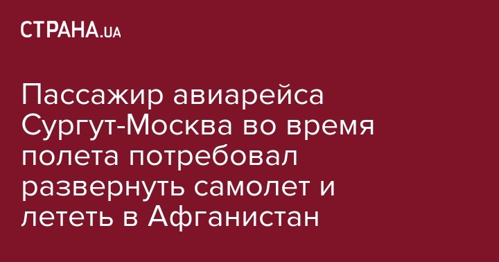 В России один из пассажиров авиарейса Сургут - Москва во время полета потребовал развернуть лайнер и направить его в Афганистан. Об этом сообщает "Интерфакс" со ссылкой на источник в авиадиспетчерских службах.