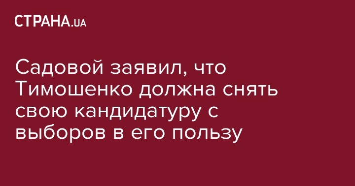 Глава партии "Самопомощь" Андрей Садовой призвал руководителя "Батькивщины" Юлию Тимошенко, которую ее политсила выдвинула кандидатом в президенты 22 января, снять свою кандидатуру с выборов в его пользу. Об этом он написал на своей странице в Facebook.