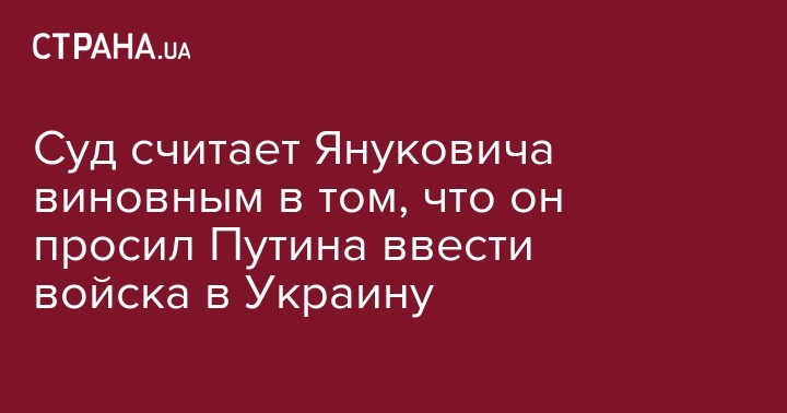 Суд считает Януковича виновным в том, что он просил Путина ввести войска в Украину