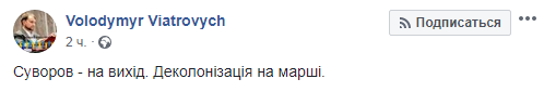"Суворов - на выход. Деколонизация на марше", - подписал он.