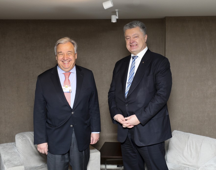 Также Петр Порошенко встретился с Генсеком ООН Антониу Гутерришем. Они обсудили последнее развитие событий на Донбассе и перспективы развертывания миротворческой миссии ООН.