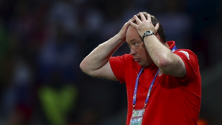 Горе наставника сборной России Леонида Слуцкого, фото: uefa.com