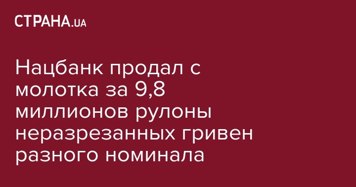 "Общая стоимость приобретенных на аукционе неразрезанных листов банкнот номиналами 1, 2, 5 и 10 гривен составила 9,8 млн гривен", - говорится в сообщении.