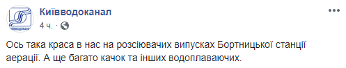 "Вот такая красота у нас на рассеивательных выпусках Бортнической станции аэрации. А еще много уток и других водоплавающих", - сообщили коммунальщики.