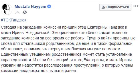 "Обвинение матери Ирины Ноздровской в отношении народного депутата Антона Яценка стали для меня сюрпризом", - написал он. По словам нардепа, он хорошо знает материалы этого производства, но об этой версии услышал только в понедельник во время заседания ВСК. Найем пишет, что ранее такую версию не озвучивали ни родственники погибшей, ни ее адвокатами. "Думаю, решение о проверке этой версии должны принять правоохранительные органы в рамках своих полномочий", - сообщил нардеп.