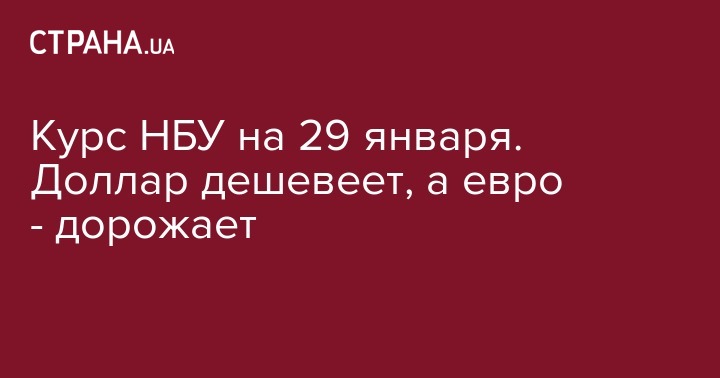 Курс НБУ на 29 января. Доллар дешевеет, а евро - дорожает