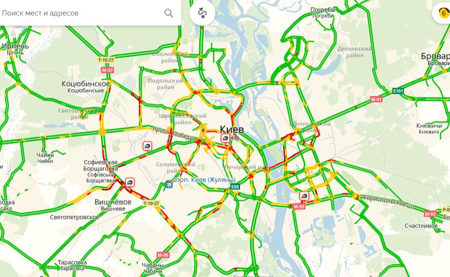 В Киеве, 31 января, из-за сильного тумана наблюдаются затруднения в движении автотранспорта, город по состоянию на 10:30 стоит в шестибалльных пробках. Об этом свидетельствуют данные сервисов Google Maps и Яндекс-пробки.