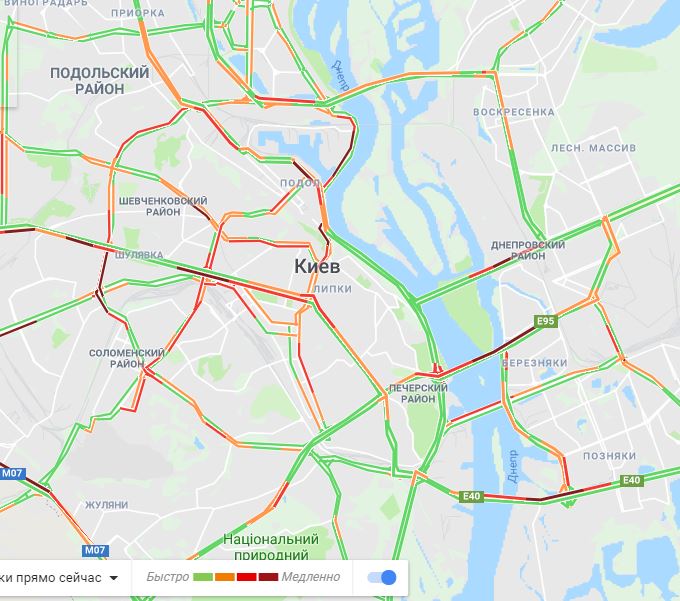Ограничения движения имеются на улицах Вифлиемской, Семена Скляренко и Набережно-Рыбальской, проспектах Победы и Степана Бандеры, на бульварах Тараса Шевченко и Дружбы народов, а также на Надднепрянском и Набережном шоссе. Осложнено движение и на левом берегу - пробки образовались на Дарницком шоссе, Броварском, ул. Бажана и проспекте Освободителей, улицах Миропольская и Братиславская, проспекте Соборности.