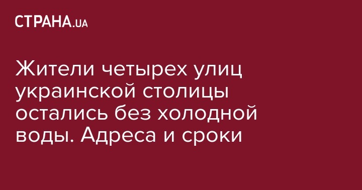 Жители четырех улиц украинской столицы остались без холодной воды. Адреса и сроки
