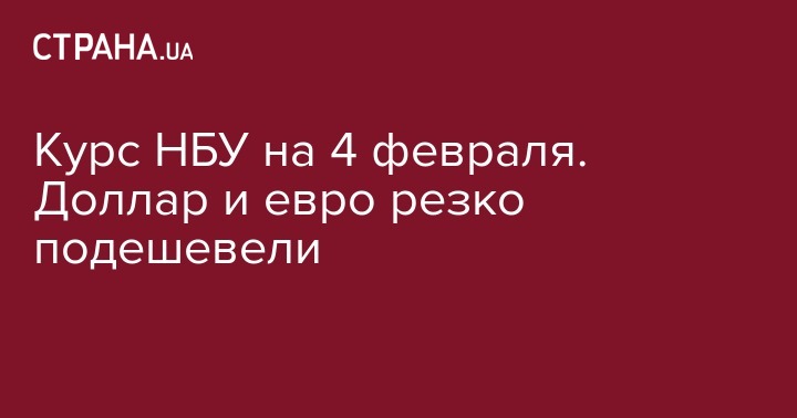 Курс НБУ на 4 февраля. Доллар и евро резко подешевели