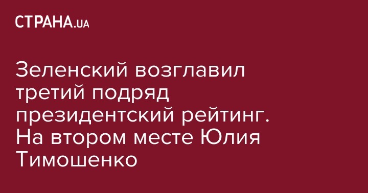 Зеленский возглавил третий подряд президентский рейтинг. На втором месте Юлия Тимошенко