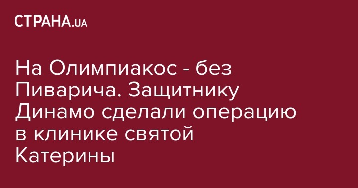 В матче 1/16 Лиги Европы против греческого Олимпиакоса киевскому Динамо точно не поможет хорватский легионер, защитник Йосип Пиварич. Сегодня, 4 февраля, он был прооперирован в Загребе, в клинике Святой Катерины.