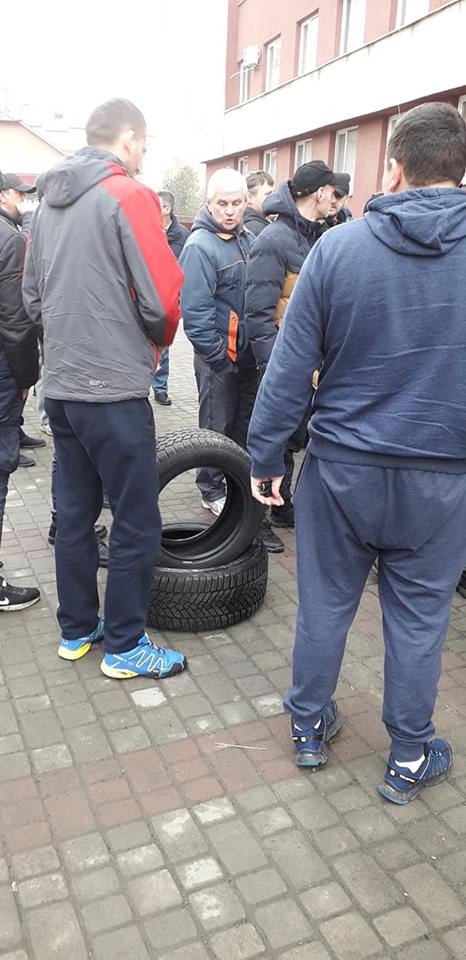 Водители принесли с собой автомобильные шины. Людей интересует, почему в области такое плохое состояние дорог и когда эту проблему будут решать. Они также требуют чтобы к ним вышел руководитель Закарпатского облавтодора.