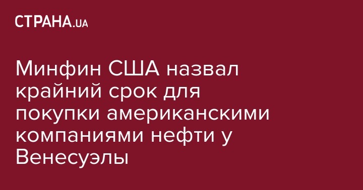 Минфин США назвал крайний срок для покупки американскими компаниями нефти у Венесуэлы