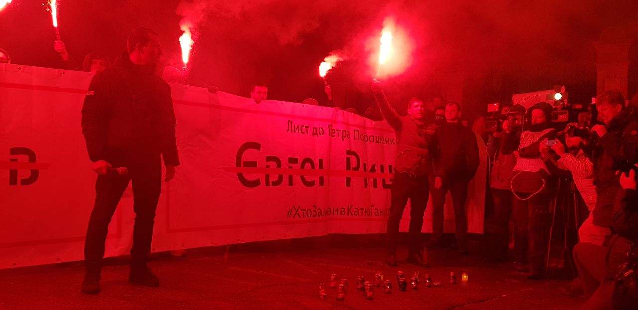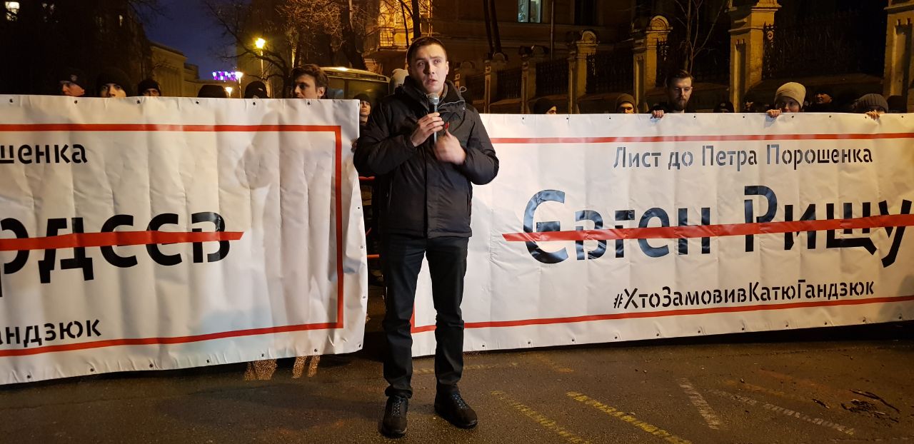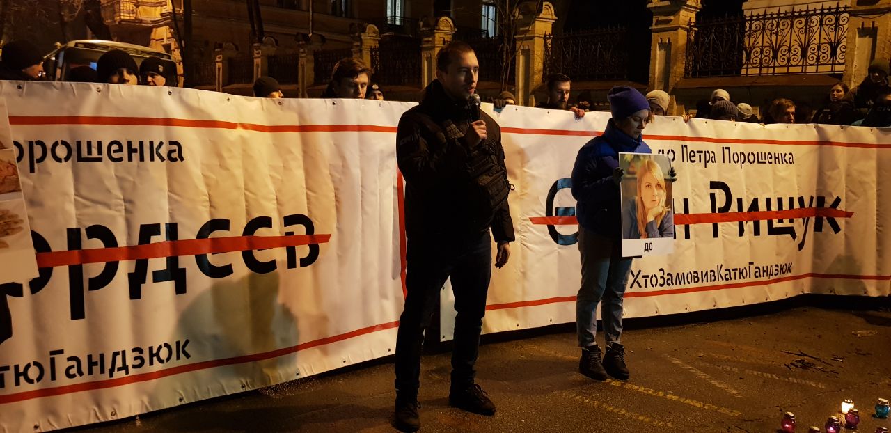 Сергей  Стерненко заявил, что он хочет, чтобы в нашей стране не убивали людей и это не оставалось безнаказанным. Он  также сказал,что требует от Порошенко освободить от должностей подозреваемых, и если этого не произойдет, то он не видит разницы между Порошенко и убийцами Екатерины Гандзюк.