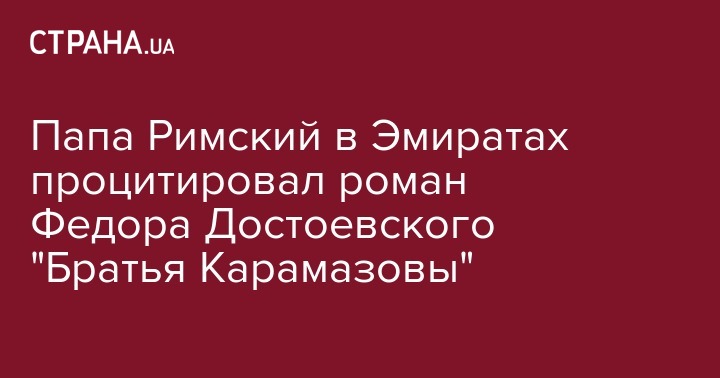 Папа Римский Франциск во время выступления в ОАЭ, посвященного диалогу религий, процитировал знаменитое произведение Федора Достоевского "Братья Карамазовы". Самого писателя он назвал современным. Об этом передает ГазетаРу.