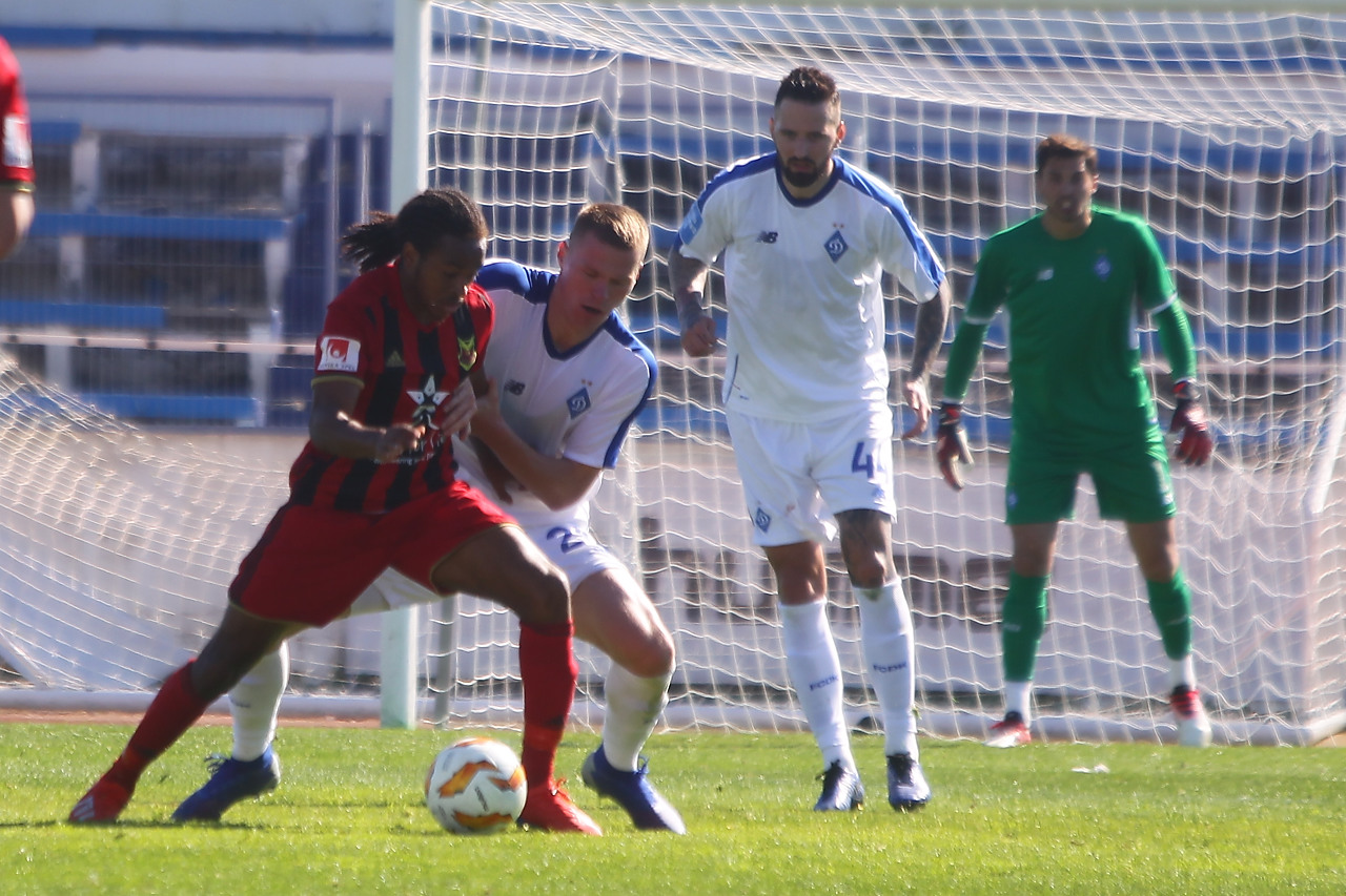 Игра вышла бескомпромиссной и иногда даже грубой. В первом тайме по ногам регулярно доставалось Цыганкову, Буяльскому, Шапаренко и Вербича. Несмотря на это подопечные Александра Хацкевича создавали моменты. Об этом сообщает пресс-служба Динамо.